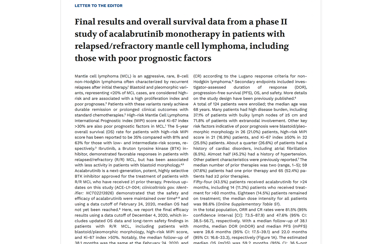 Calquence monoterapi hos pasienter med relapse/refraktær MCL i en åpen fase II studie.4