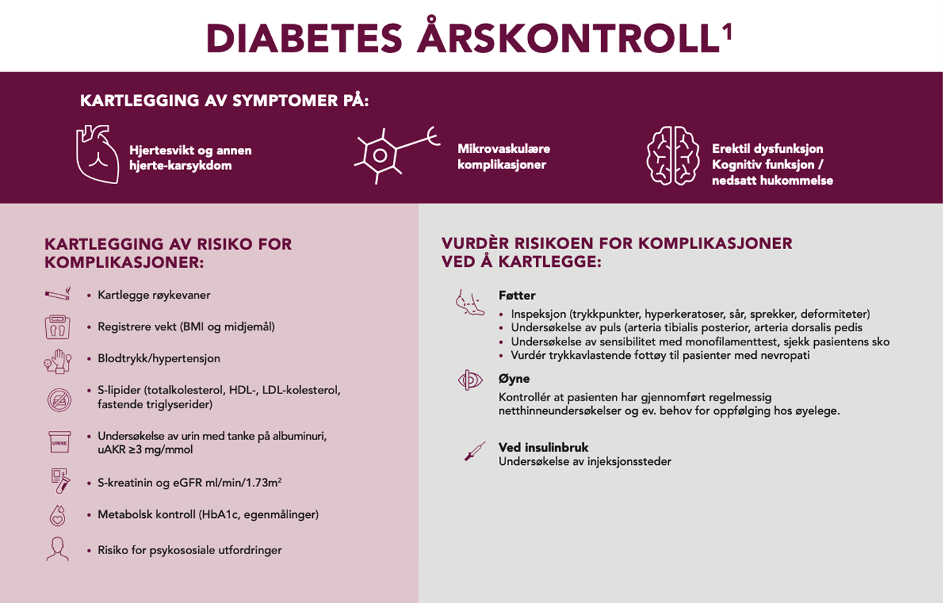 Helsedirektoratet gir en sterk anbefaling om årskontroller, oppfølging utover årskontroller og bruk av diabetesskjema for pasienter med diabetes type 2.