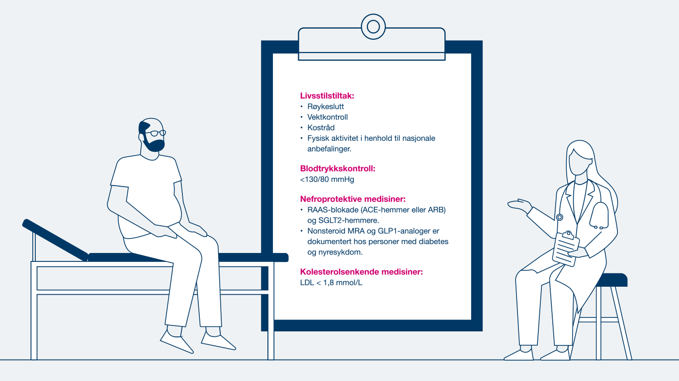 Mer informasjon og en forklarende video (02.24 min) om TILTAK OG BEHANDLING ved kronisk nyresykdom.