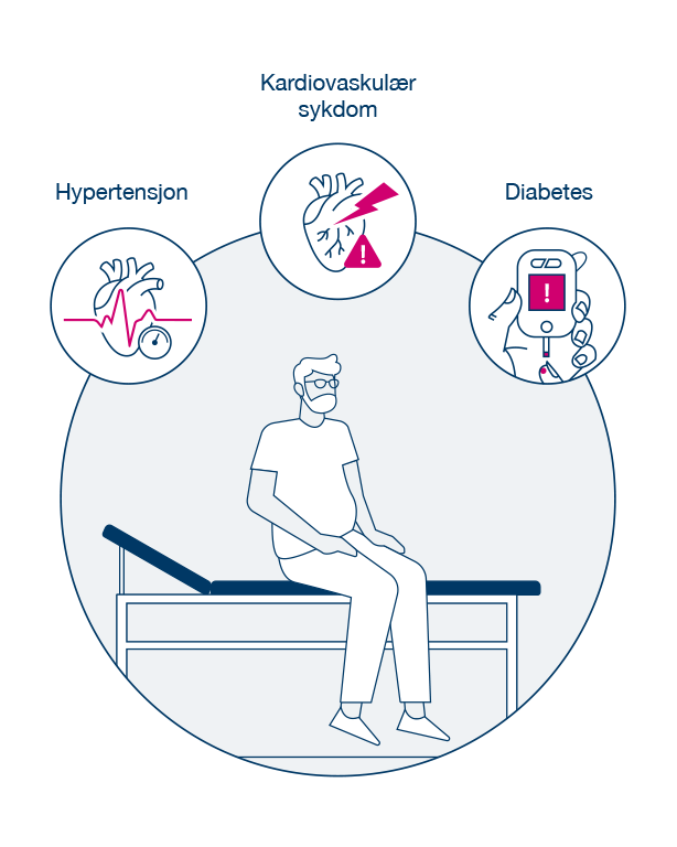 Kronisk nyresykdom (CKD) er hyppig forekommende og en viktig og undervurdert risikofaktor for kardiovaskulære hendelser. CKD gir normalt ikke symptomer i tidlige stadier og er i stor grad underdiagnostisert i befolkningen. I Norge regner man med at 1 av 10 voksne har kronisk nyresykdom, men mange vet ikke om det.1-3