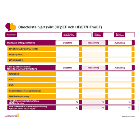 För att underlätta diagnos, klassificering och behandling vid kronisk hjärtsvikt har vi tagit fram en praktisk översikt baserad på de uppdaterade riktlinjerna från European Society of Cardiology (ESC) och Nationellt system för kunskapsstyrning – vårdförlopp vid nydebuterad hjärtsvikt.