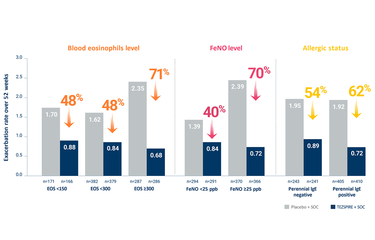 De data som finns stöder dock möjligheten att tezepelumab har effekter på en population av patienter med svår astma som även inkluderar de som har låggradig eller ingen typ 2-inflammation.