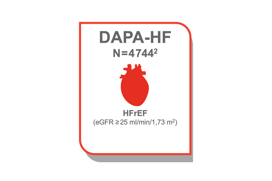 Läs mer om effekten av Forxiga hos patienter med kronisk hjärtsvikt i studierna DAPA-HF och de poolade analysen av DAPA-HF och DELIVER i länkarna här nedanför. Du hittar också länkar till de viktigaste studierna gällande övriga indikationer för Forxiga; kronisk njursjukdom (CKD) och typ 2-diabetes.